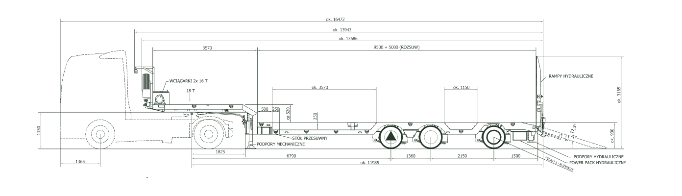 | Rodzaj zabudowy | Ciągnik siodłowy + naczepa niskopodwoziowa |